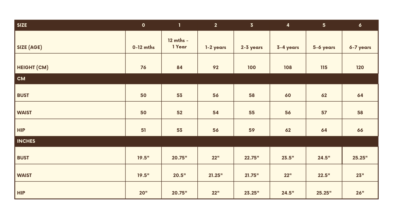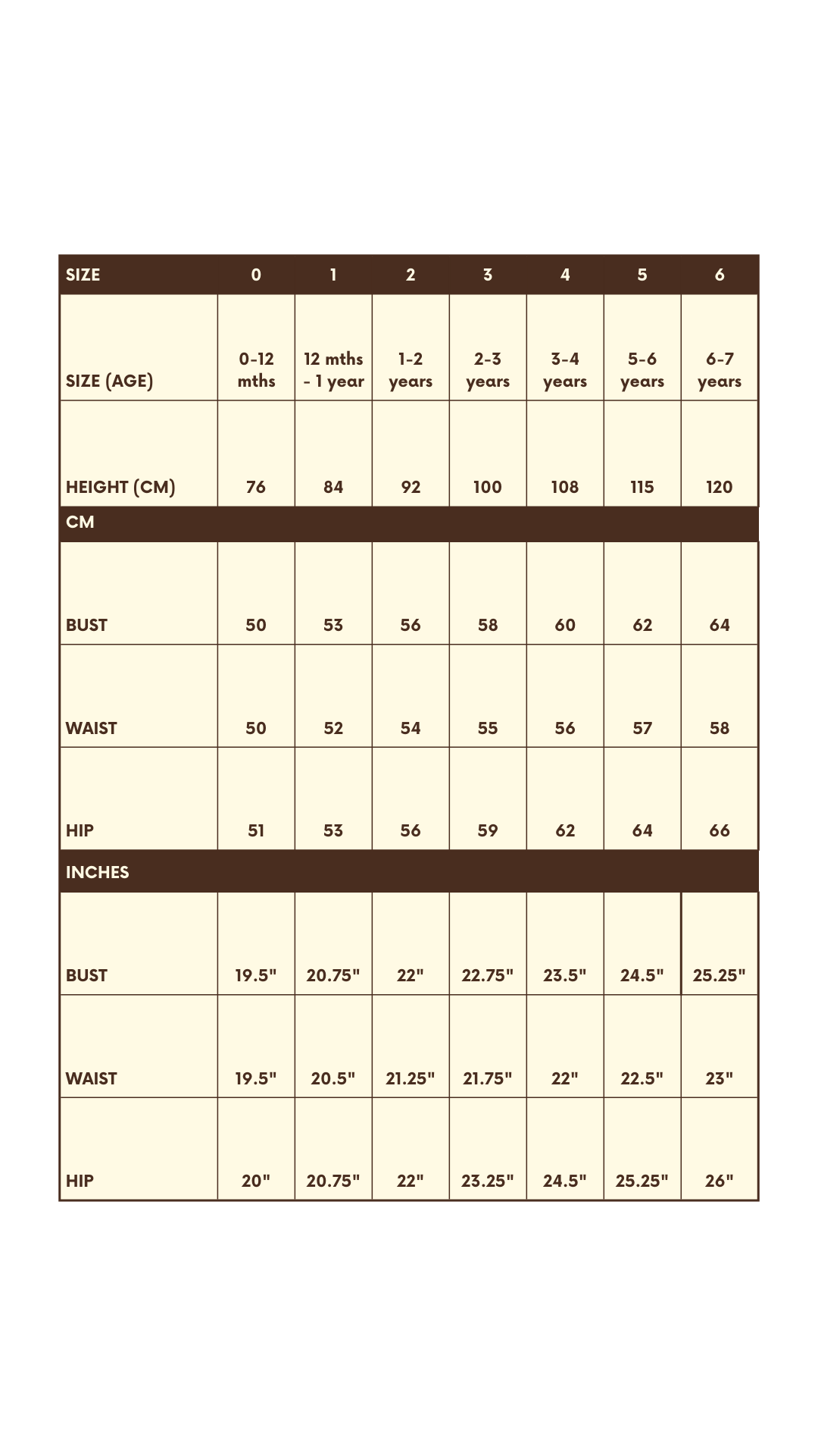 Kids grow at their own pace and in their own way, so age and size don’t always line up perfectly. Our size chart is a guide, but every little one is unique.