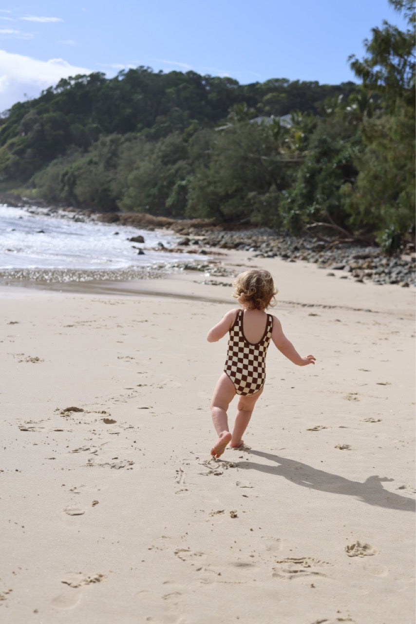 Two looks, one suit. Bobby is our retro dream piece with a cool high-neck, scooped-back and a clever reversible design. Featuring a classic checkered print on one side and a retro yellow on the flip, it’s made for beach days, pool hangs and packing light.